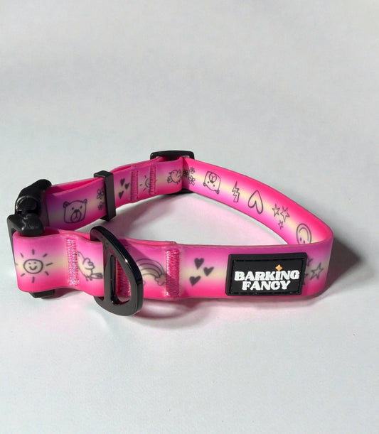 "Doodles" Waterproof Dog Collar - Pink Gradient