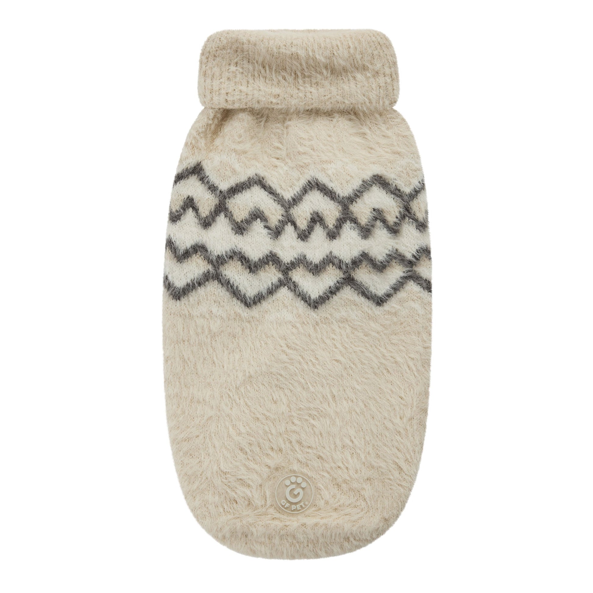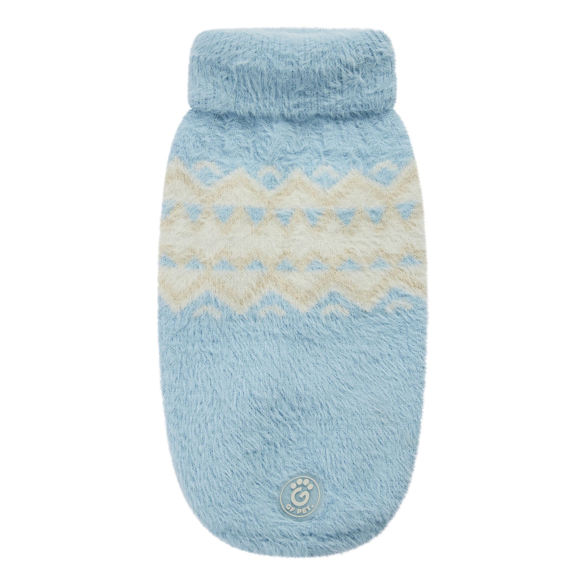 The GF PET Fuzzy Sweater is our snuggliest sweater ever! With just the right amount of feathery fuzz at the perfect weight, this exquisite sweater seamlessly blends snuggly softness with high-style. GF PET signature sculpted body shape, with a high turtleneck and quality arm holes, offers a super comfy fit for both boy and girl doggies. From indoor lounging to outdoor strolls, elevate your pet's style with this premium and original fuzzy statement of beauty!