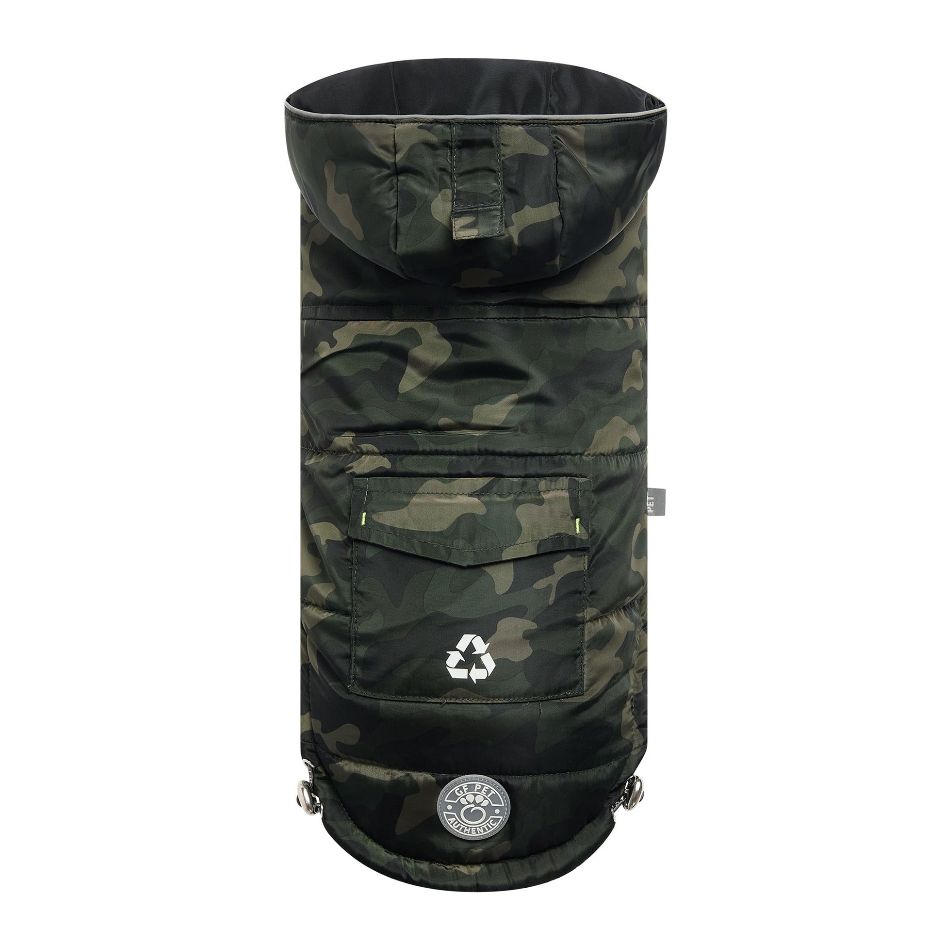 The GF Pet Recycled Parka is made from 100% recycled fabric produced from recycled PET plastic like that from plastic water bottles and is responsible, versatile, sustainable, heritage-inspired, and weather resistant. Enjoy the ever-stylish GF Pet signature contrast binding and accents. With its’ tackable hood, practical rear pocket, and reflective piping, it will keep your dog protected, cozy, and environmentally responsible! Super adjustable, with patented Elasto-fit technology, it's perfect for dogs and owners who are proud to support our planet!